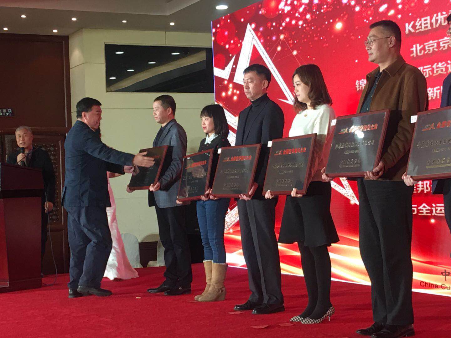 图为齐会长为优秀报关企业颁奖