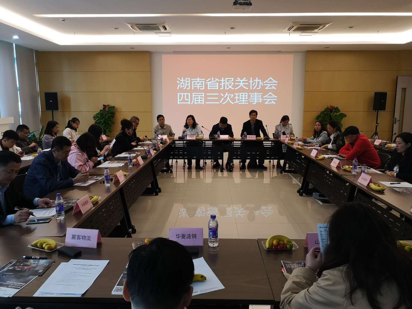 2019年5月8日,湖南省报关协会四届三次理事会在长沙广汽菲亚特克莱斯勒汽车有限公司召开,会议由赵沛桢(协会副会长单位广汽菲亚特克莱斯勒汽车有限公司供应链管理部高级副总监)主持,协会会长齐宪生,副会长兼秘书长邓洪伟、副会长李晓明、熊志宇出席了会议。会议审议通过了湖南省报关协会监事会制度,一致同意顾熙(协会副会长单位湖南中烟工业有限公司)、黄红(协会常务理事单位中国水利水电第八工程局有限公司)、楚琳(协会理事单位湖南朝日五内衣有限公司)等三人为湖南省报关协会监事会成员。经湖南省报关协会监事会全体成员推举,顾熙为湖南省报关协会监事会监事长。新任监事长顾熙在会上作了表态发言。